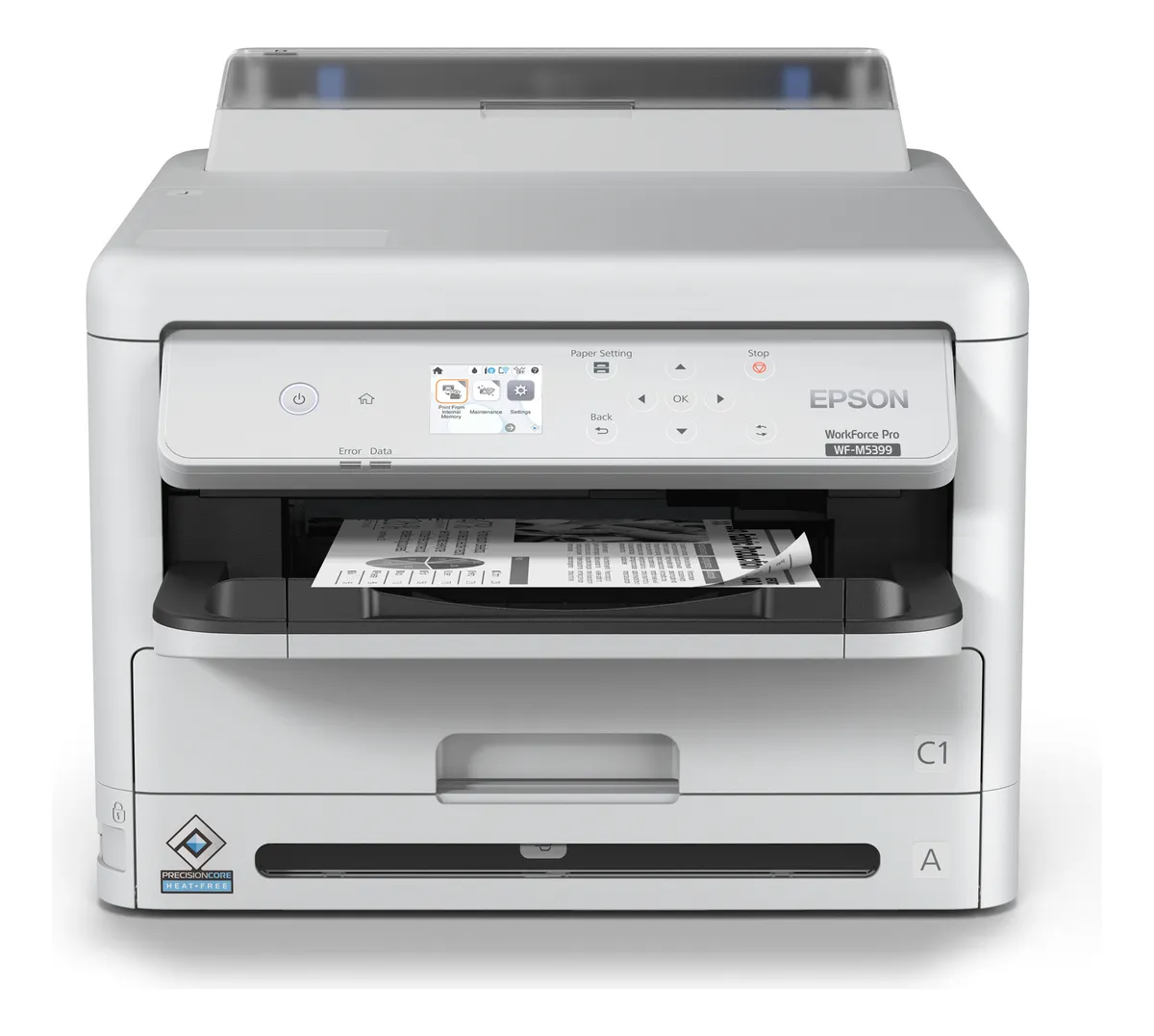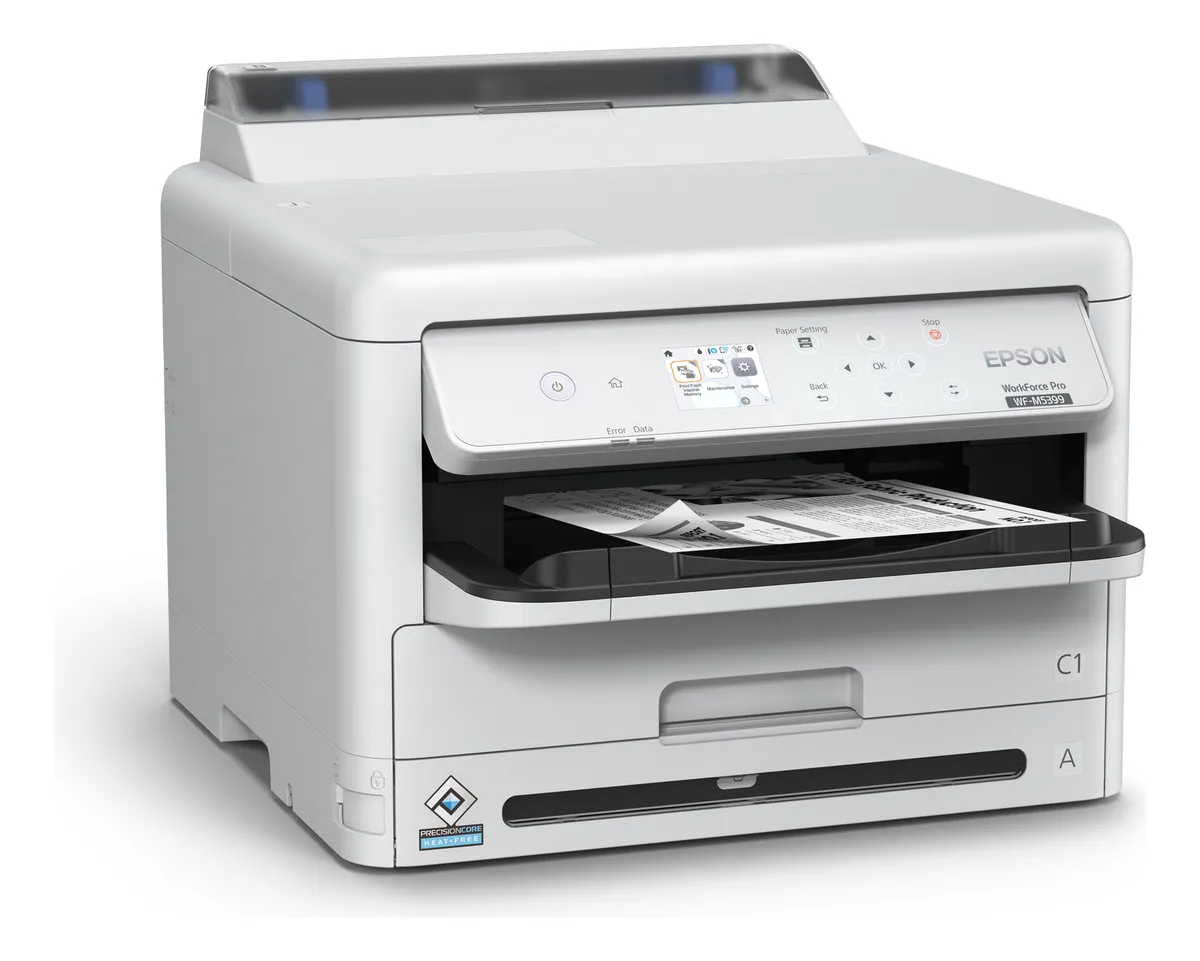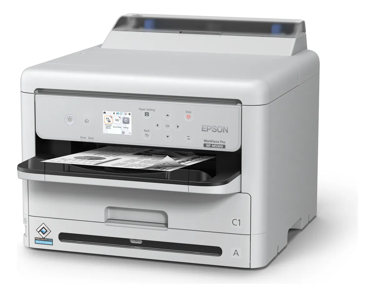 La Epson WorkForce Pro WF-M5399 es una impresora monocromática profesional diseñada para grupos de trabajo exigentes que necesitan alta productividad con bajo costo operativo. Con 25 ppm, bolsas de tinta de hasta 40.000 páginas y tecnología PrecisionCore Heat-Free®, ofrece velocidad real sin tiempos de calentamiento y un rendimiento confiable para entornos empresariales.