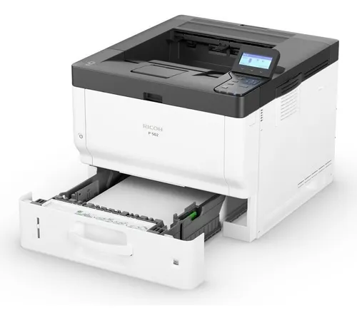 Impresora láser monocromática Ricoh P 502, diseñada para altos volúmenes de impresión con máxima fiabilidad y bajo costo por página.