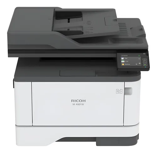 Multifunción Ricoh M 400FW monocromática con conectividad Wi-Fi incorporada, diseñada para entornos de trabajo que necesitan alto rendimiento, fiabilidad y bajo costo por página.